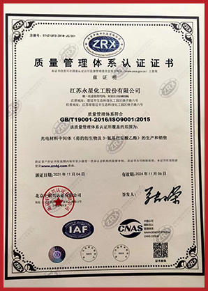 江蘇永星化工股份有限公司成立于2010年,位于江蘇省宿遷市宿豫區(qū)生態(tài)化工科技產(chǎn)業(yè)園揚(yáng)子路6號,注冊資本3215.463萬元,占地105畝,分為南北兩個(gè)廠區(qū)。